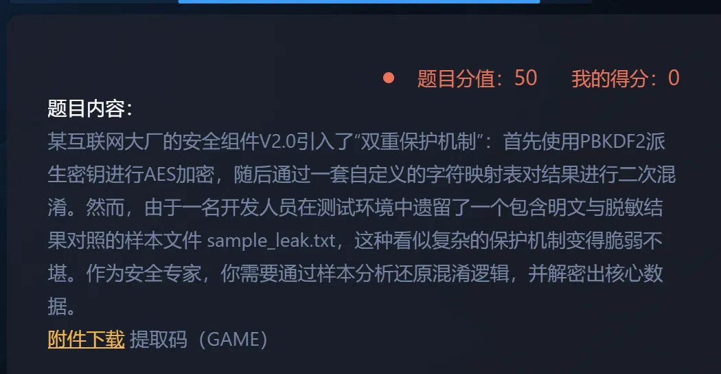 然而,开发人员在测试环境中遗留了一个包含明文与脱敏结果对照的样本文件 <font style="color:rgb(192, 52, 29);background-color:rgb(246, 246, 246);">sample_leak.txt</font>,这成为了突破口