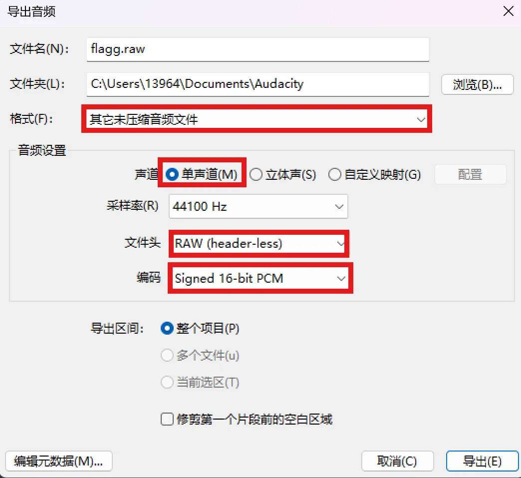 位深度设置为16 单声道
