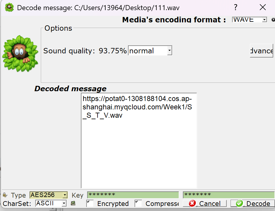 打开 加载output.wav点击decode 获得一张图像